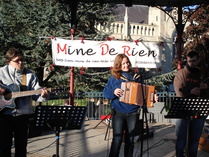 Alors que les vignerons les plus septentrionaux de France pressaient la prochaine cuvée de "Fleur de lin" Mine De Rien leur jouait quelques airs pour leur donner du courage.